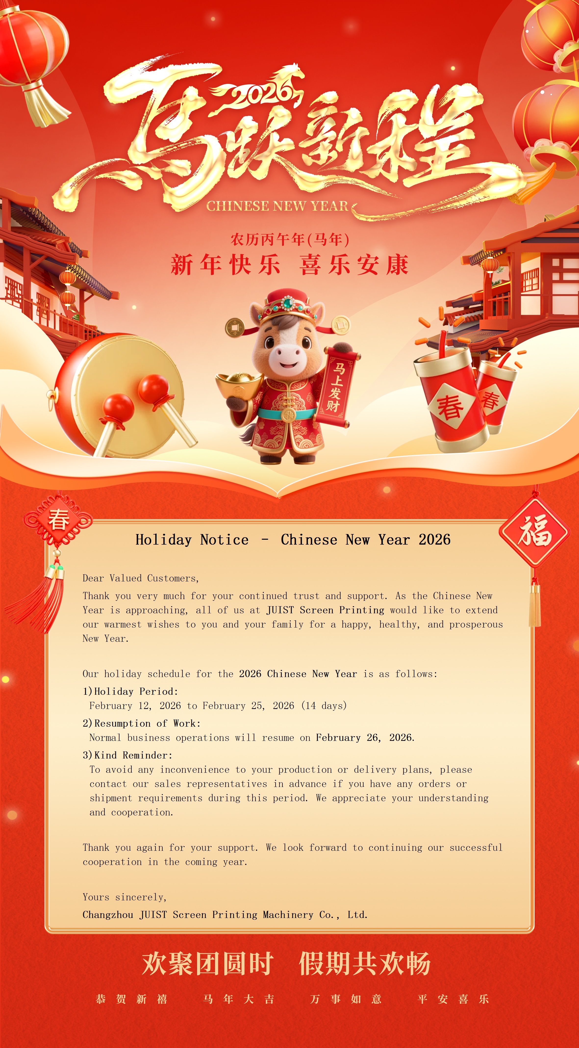 Holiday Notice – Chinese New Year 2026